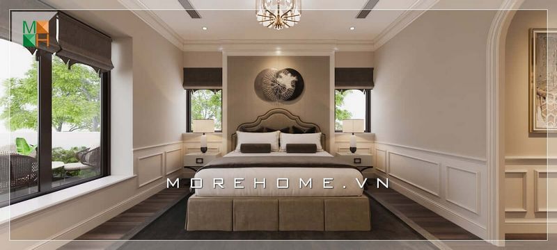 Thiết kế nội thất giường ngủ biệt thự phong cách tân cổ điển, sang trọng