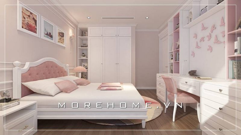 Mẫu tủ quần áo màu trắng sang trọng và thanh lịch phù hợp với nhiều không gian phòng ngủ bé gái