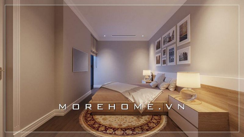 Trang trí phòng ngủ nhà phố nhỏ hiện đại, chất liệu gỗ công nghiệp được gia chủ ưu tiên lựa chọn trong không gian này