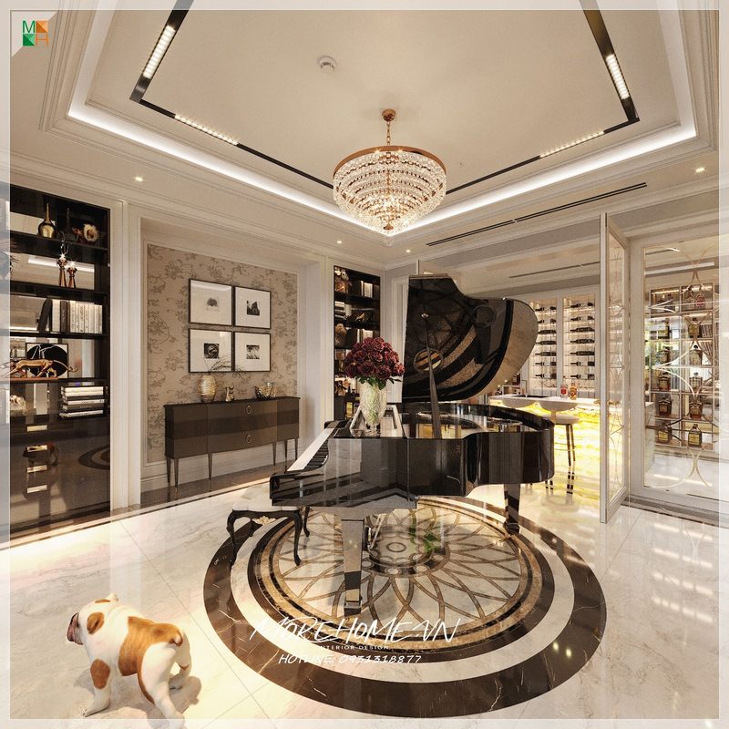 Thiết kế không gian sảng nhà biệt thự đẹp với sản phẩm đá ốp sàn màu trắng tinh tế