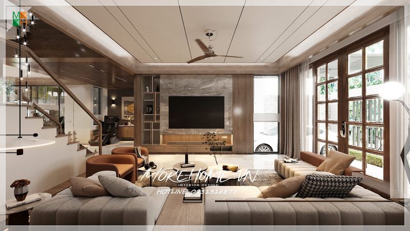 Thiết kế phòng khách biệt thự hiện đại mang đến sự sang trọng và tinh tế cho không gian sống của tổ ấm gia đình Việt.