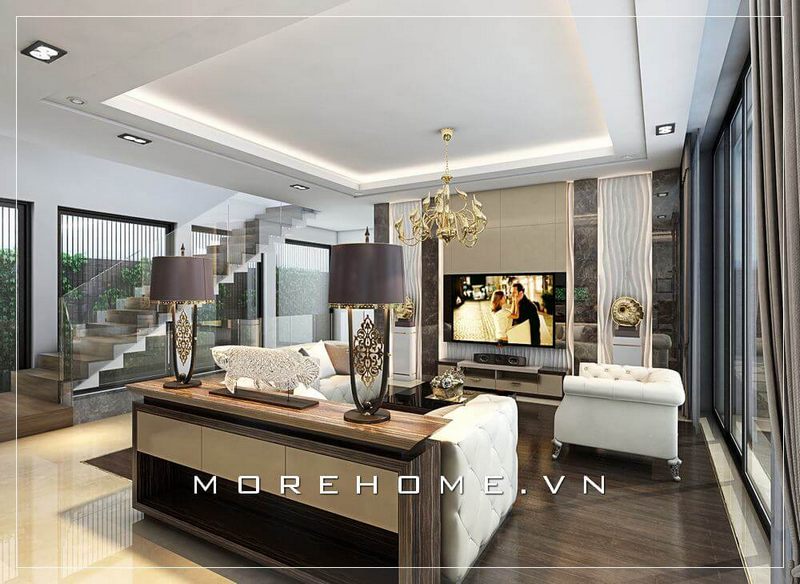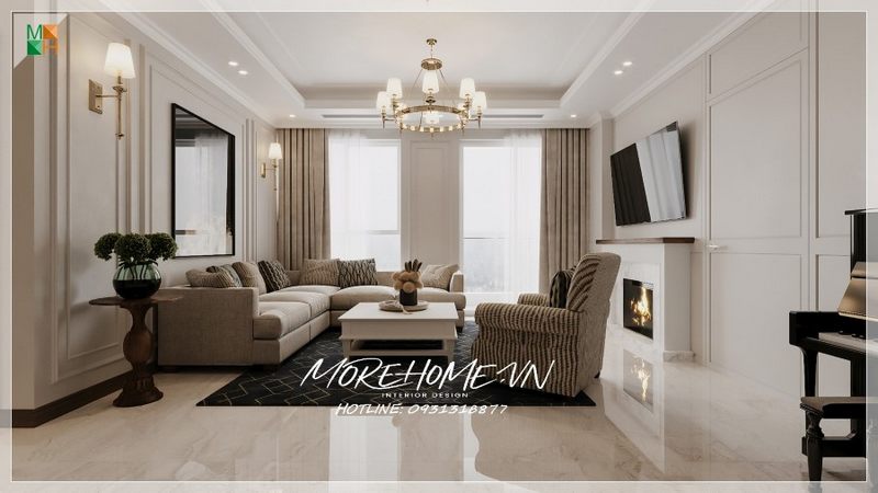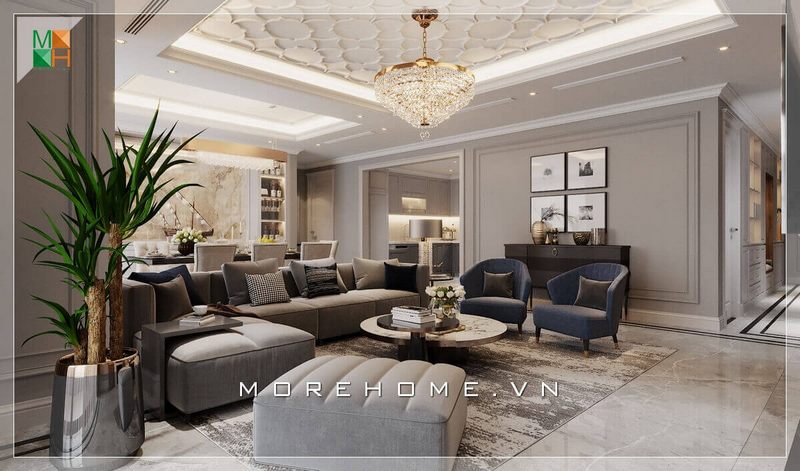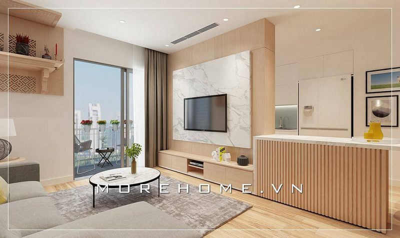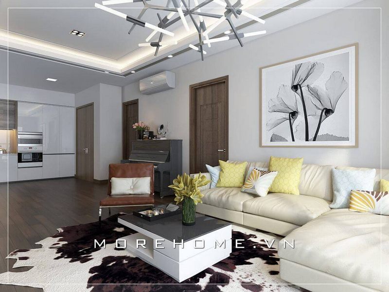 Với kiểu dáng thiết kế hiện đại mẫu thiết kế phòng khách chung cư của Morehome luôn nhận được sự ưu ái và ủng hộ của đông đảo khách hàng.