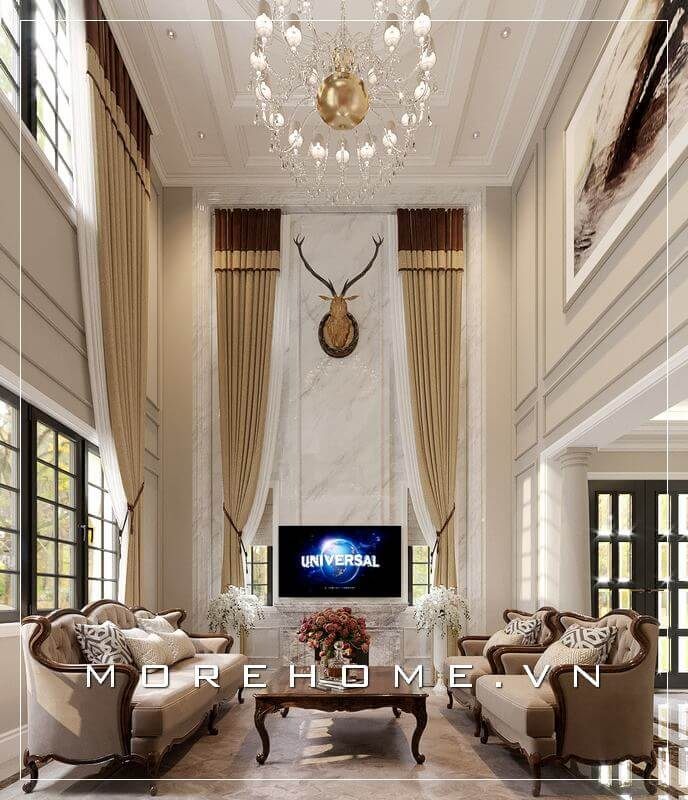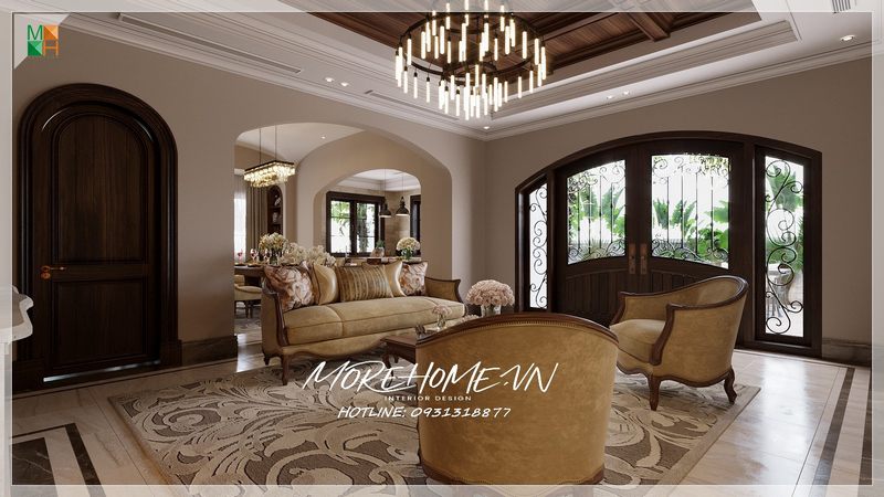 Mẫu thi công thiết kế nội thất không gian phòng khách biệt thự, chung cư, nhà phố theo phong cách tân cổ điển sang trọng và đẳng cấp.