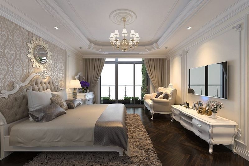 Kệ tủ tivi gỗ tự nhiên màu trắng tân cổ điển đẹp mắt thu hút bởi đường cong chạm khắc tỉ mỉ điêu luyện