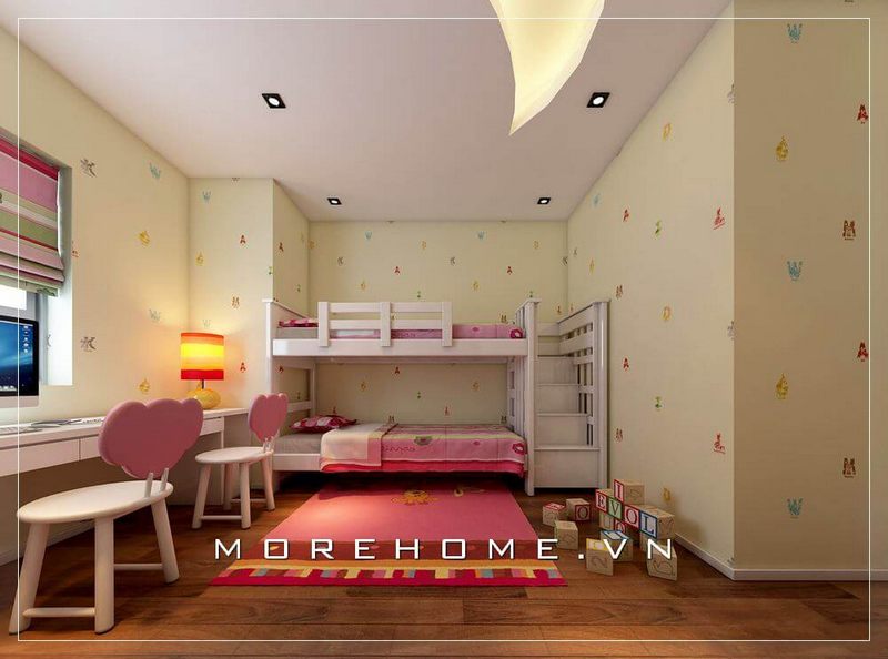 Morehome cung cấp một mẫu thiết kế phòng ngủ bé gái đẹp với gam màu hồng làm nổi bật.